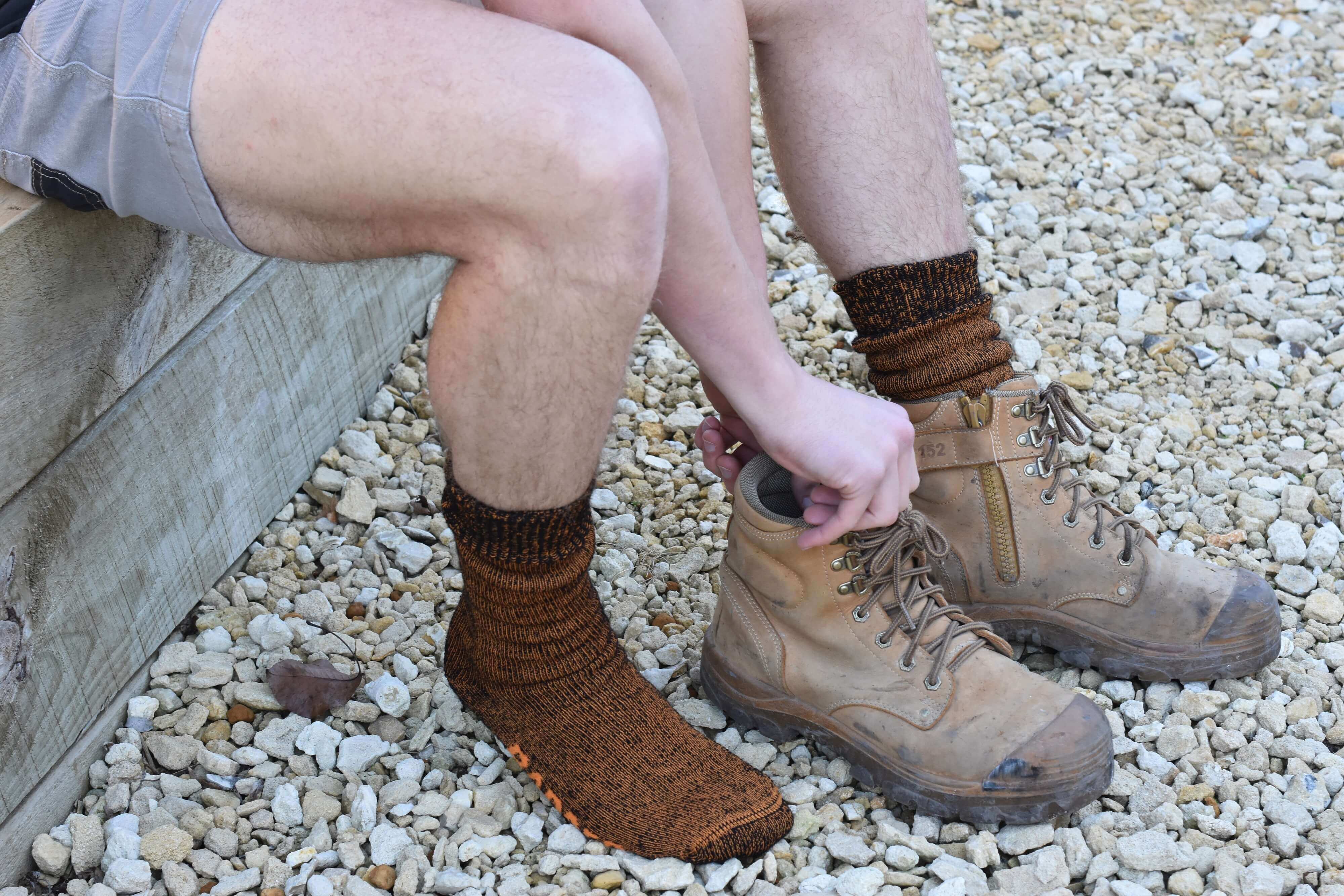 A good work boot sock will add cushioning and make your boots more comfortable. Polyester, bamboo and wool/synthetic blends will always keep your feet comfier than cotton, as it wicks moisture away from your skin. Cotton socks absorb moisture and will leave your feet damp. Woolen blends are the best, as they are also antimicrobial (anti-stink).