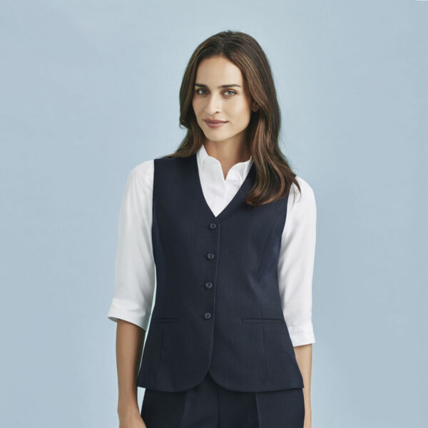 A classic vest perfect for hospitality. Fully lined with fused panels, tailored fabric back, and front welt pockets.
