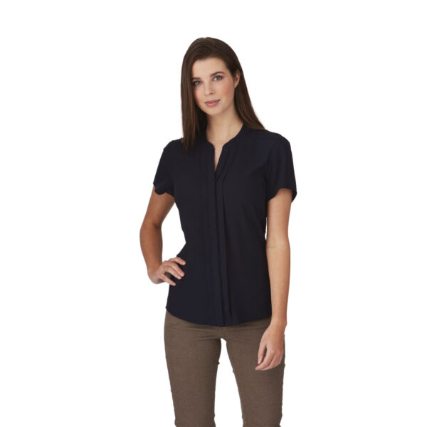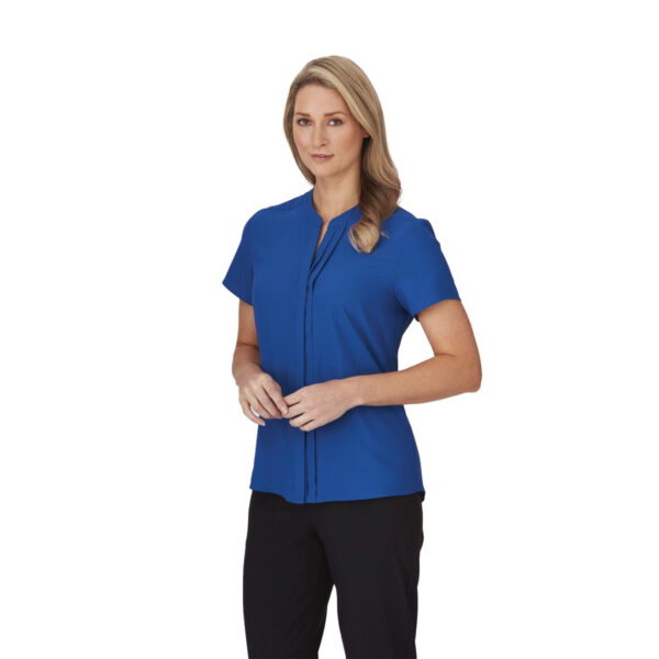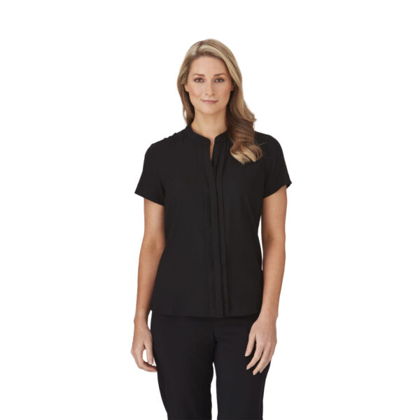 Elegant, relaxed-fit blouse with pleated front, concealed buttons and action back, capturing todays corporate trends. Cool to wear and ideal for the busy professionals. This style is shaped through the body with room to move. It is neither too slim nor too loose and can be worn tucked or untucked. This fit is suitable for most body types.